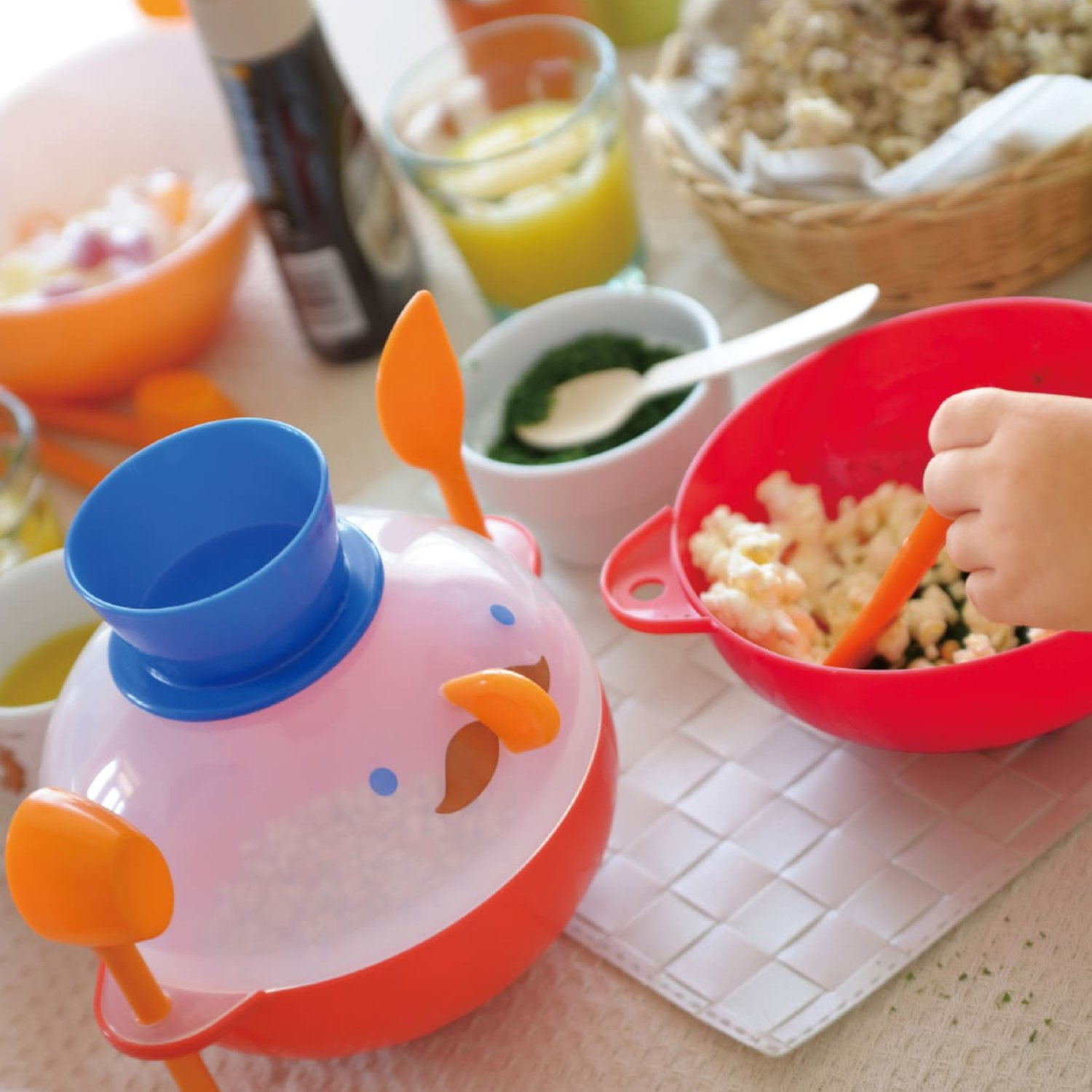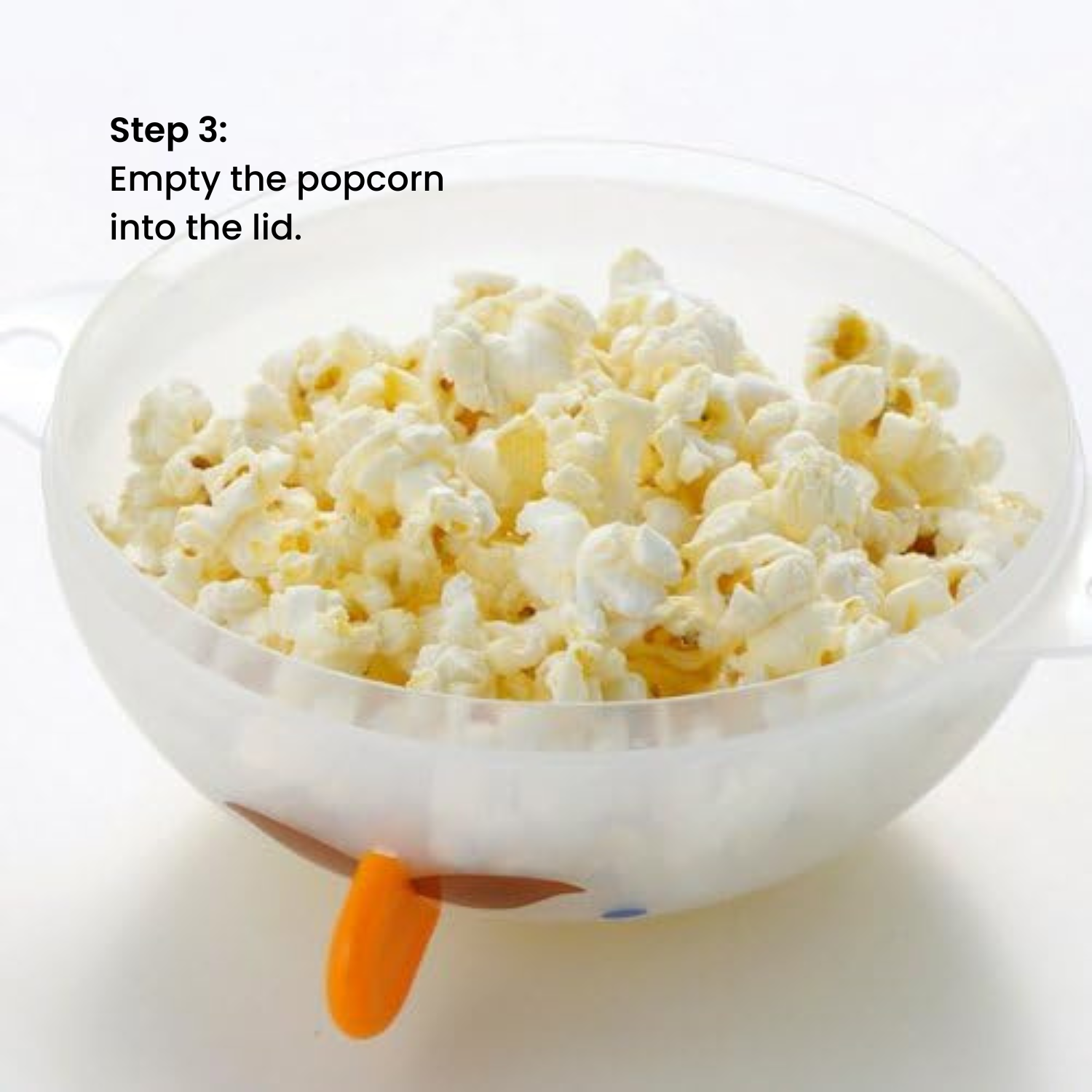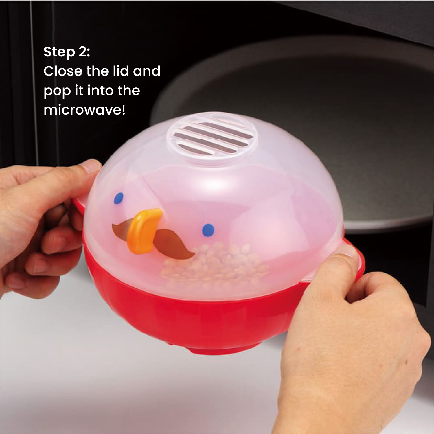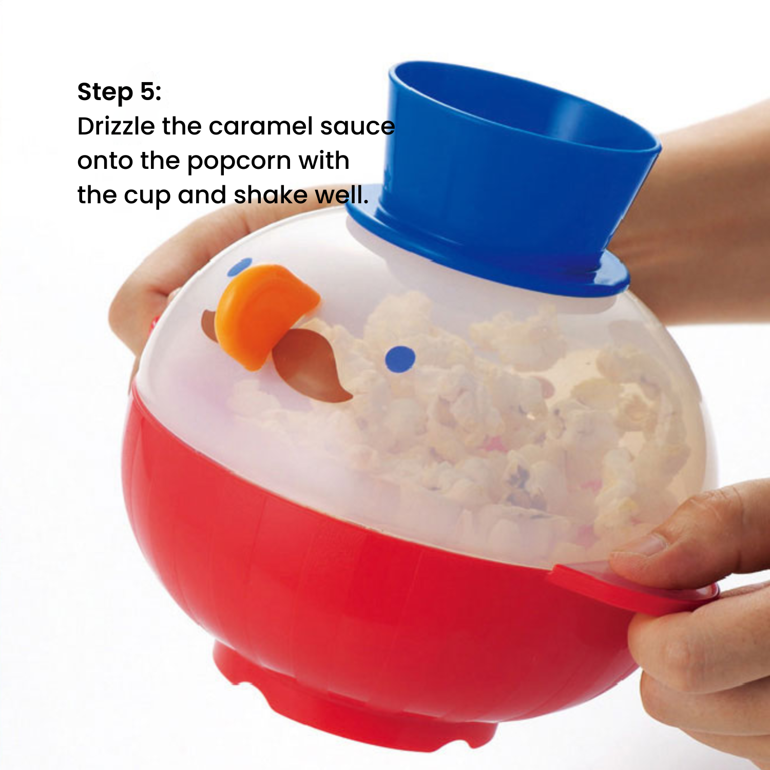 Get your kids involved in the kitchen on movie nights, with all the tools to make fresh popcorn safely and conveniently with a microwave, in a single cute character!