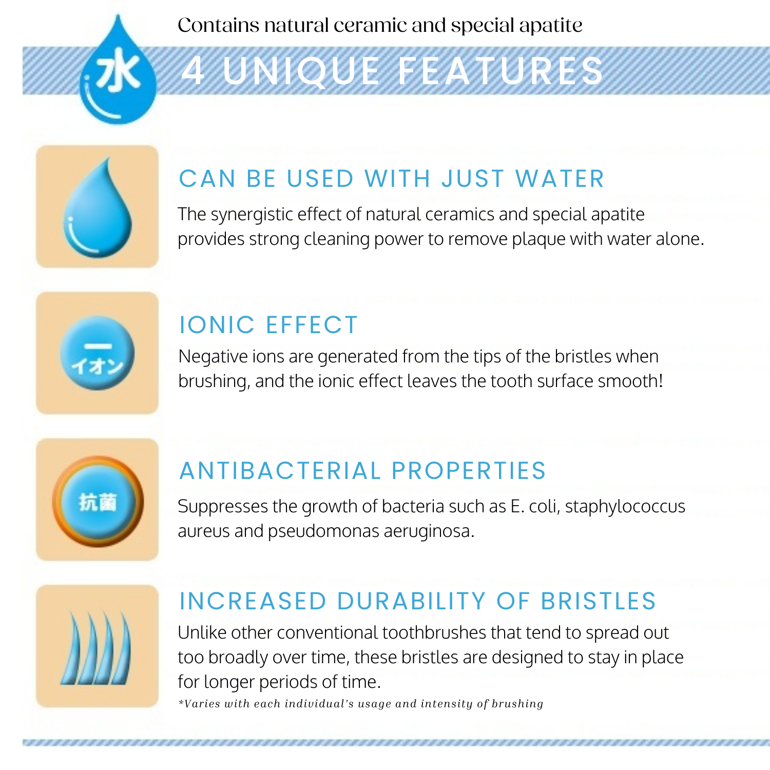 Bristles: Nylon (with ion and antibacterial effect)