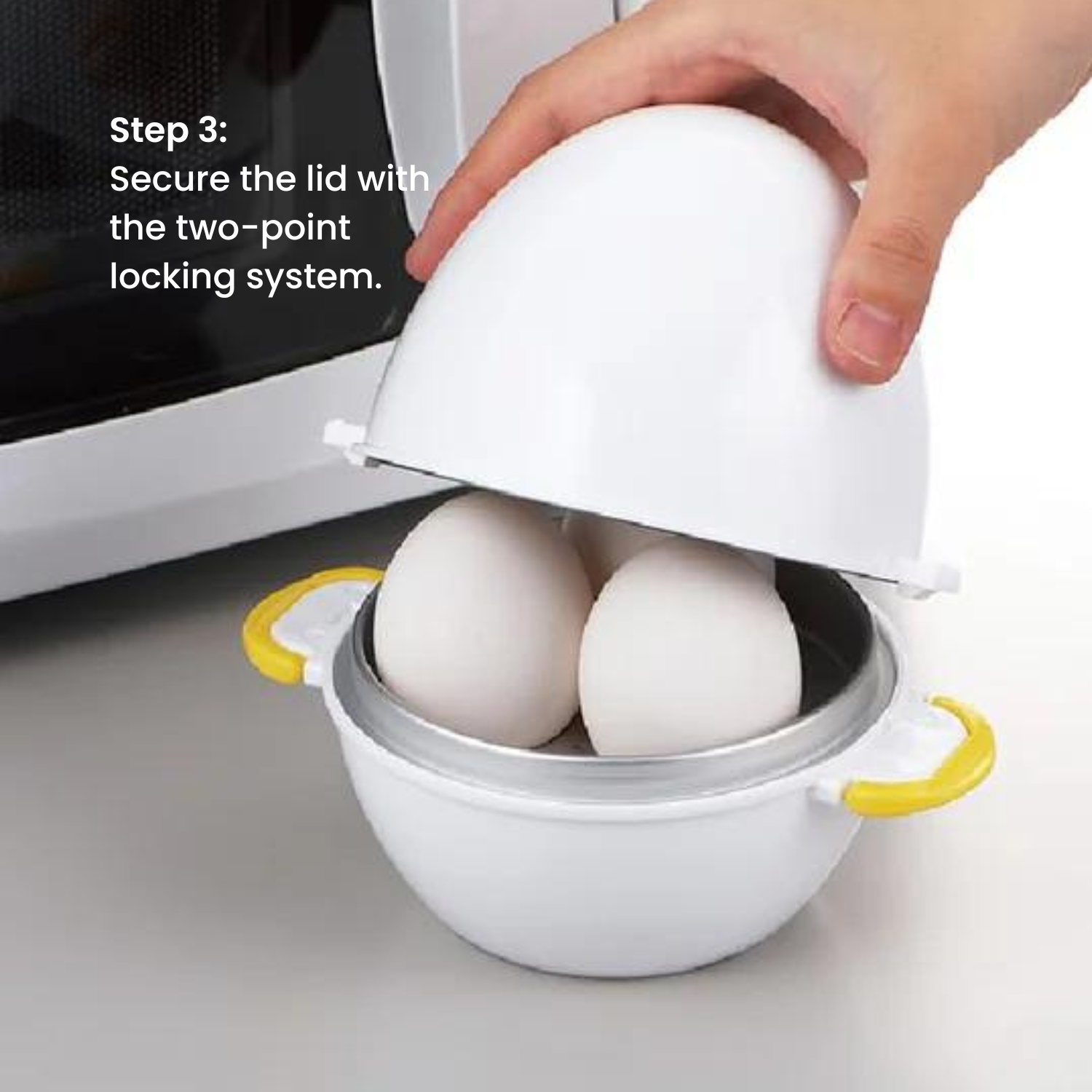 *Adjust heating time ~30-60 seconds shorter for half-boiled, and ~30-60 seconds longer for hard-boiled.