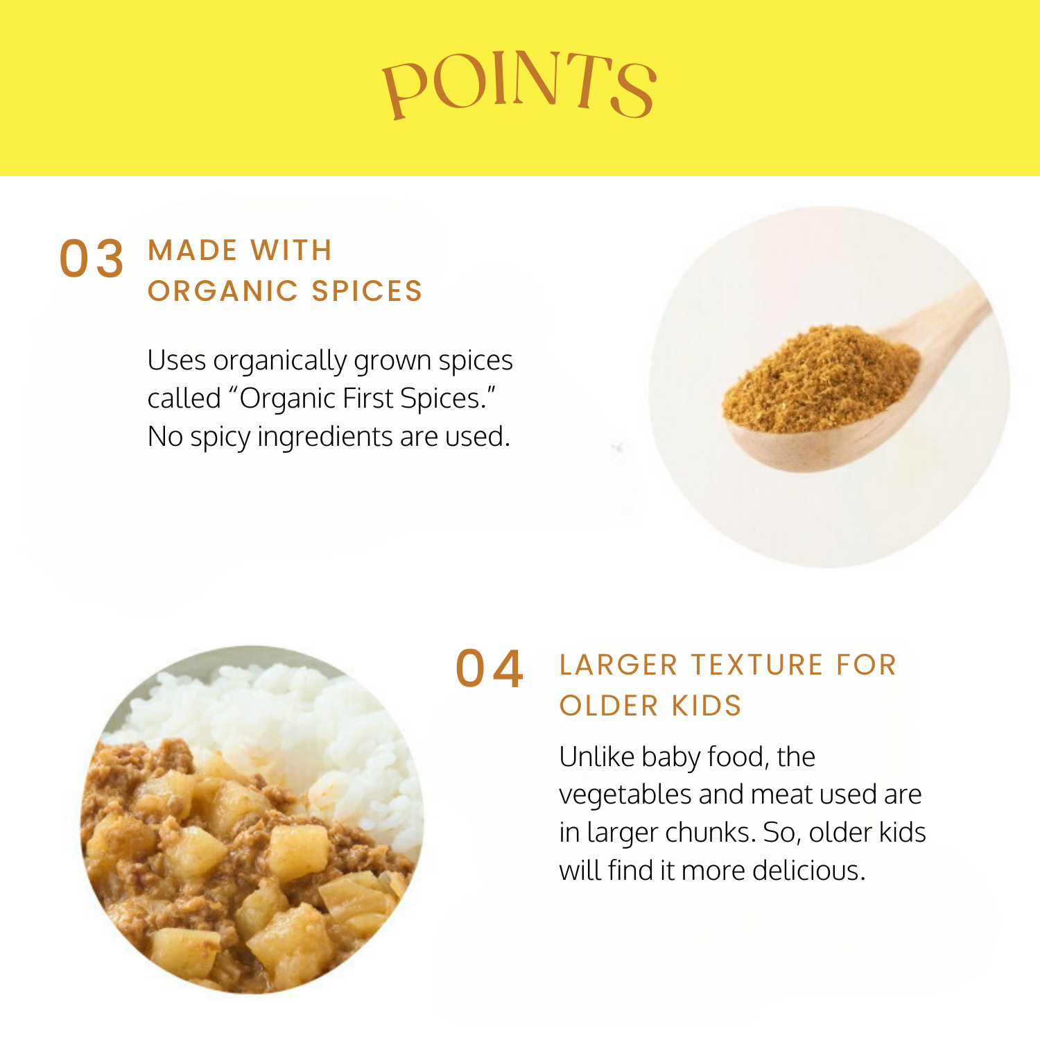 Unsure about how and when to introduce curry and spices to your kid? This ready-to-eat curry uses organically grown spices, without spicy ingredients, and tastes delicious!