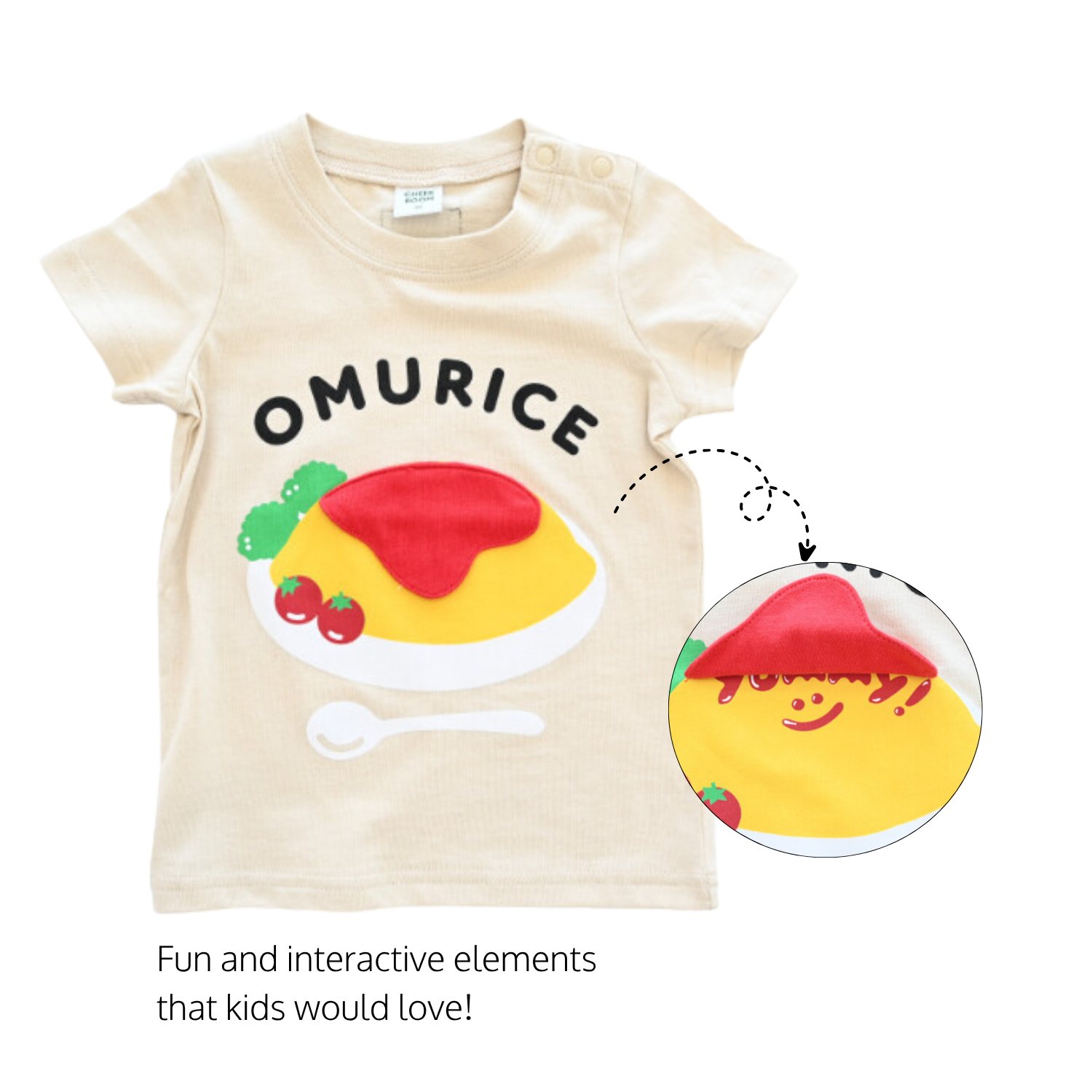 Flip, play, and munch on fun with our Omurice Tee! Featuring movable toppings inspired by Japanese omelette rice, it’s perfect for little foodies who love to explore and play. Soft, comfy, and full of color—learning has never been this tasty!