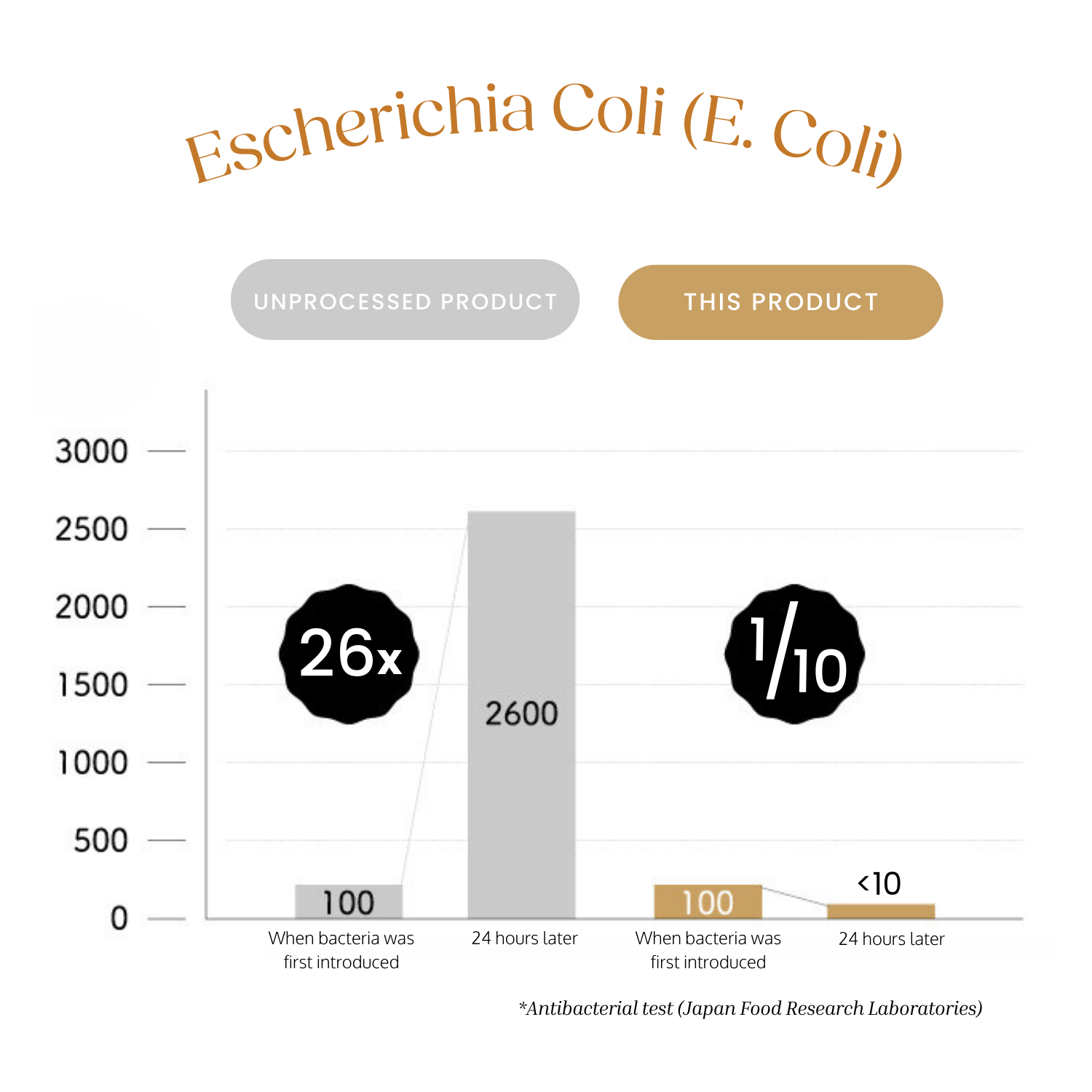 *Based on tests against E.coli & Staph, conducted by Japan Food Research Laboratories.