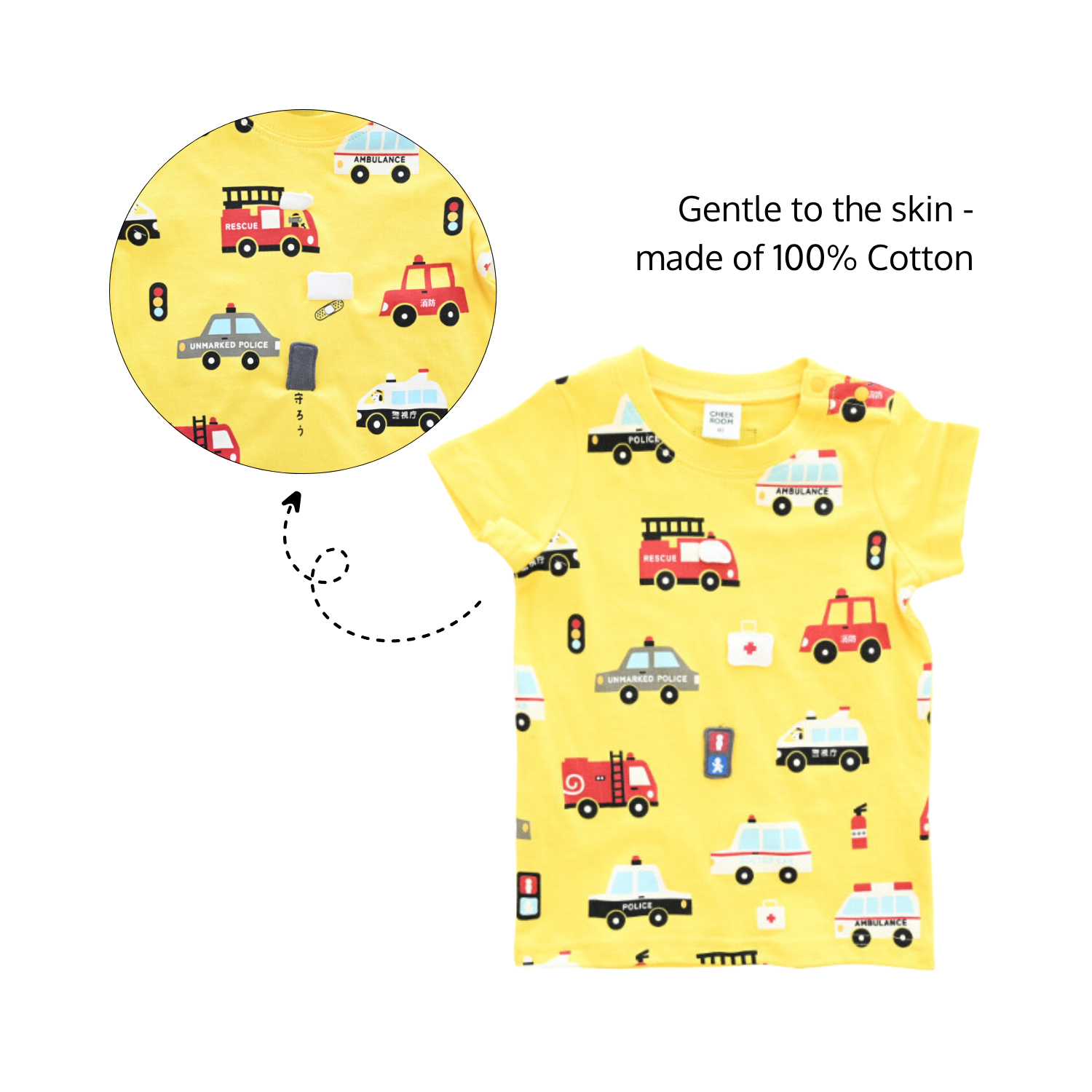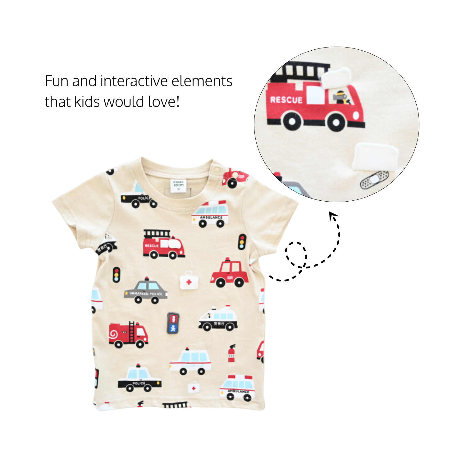 Cheekroom is a Japanese kidswear brand inspired by educational play. With fun designs and interactive details, each piece encourages kids to look, touch, and explore—turning everyday outfits into joyful learning moments.