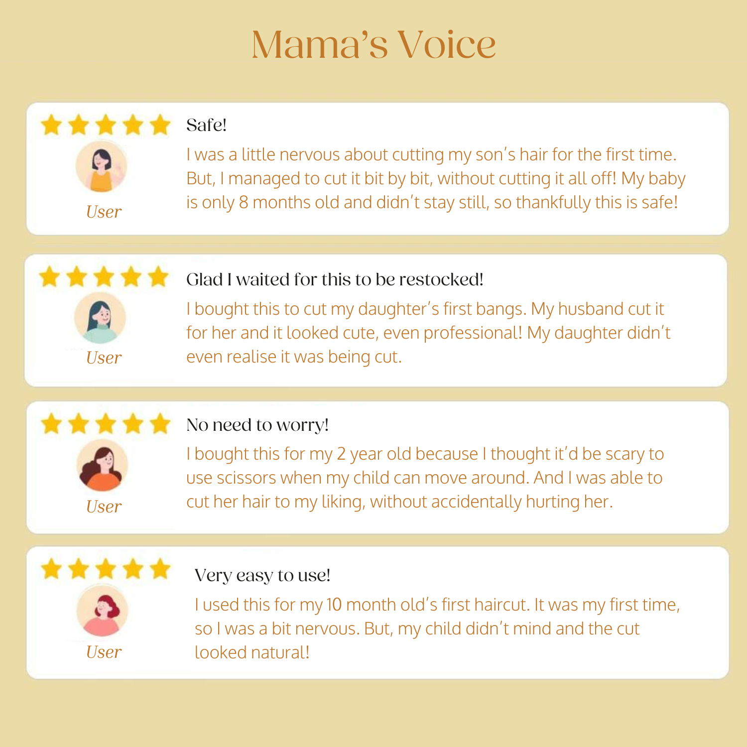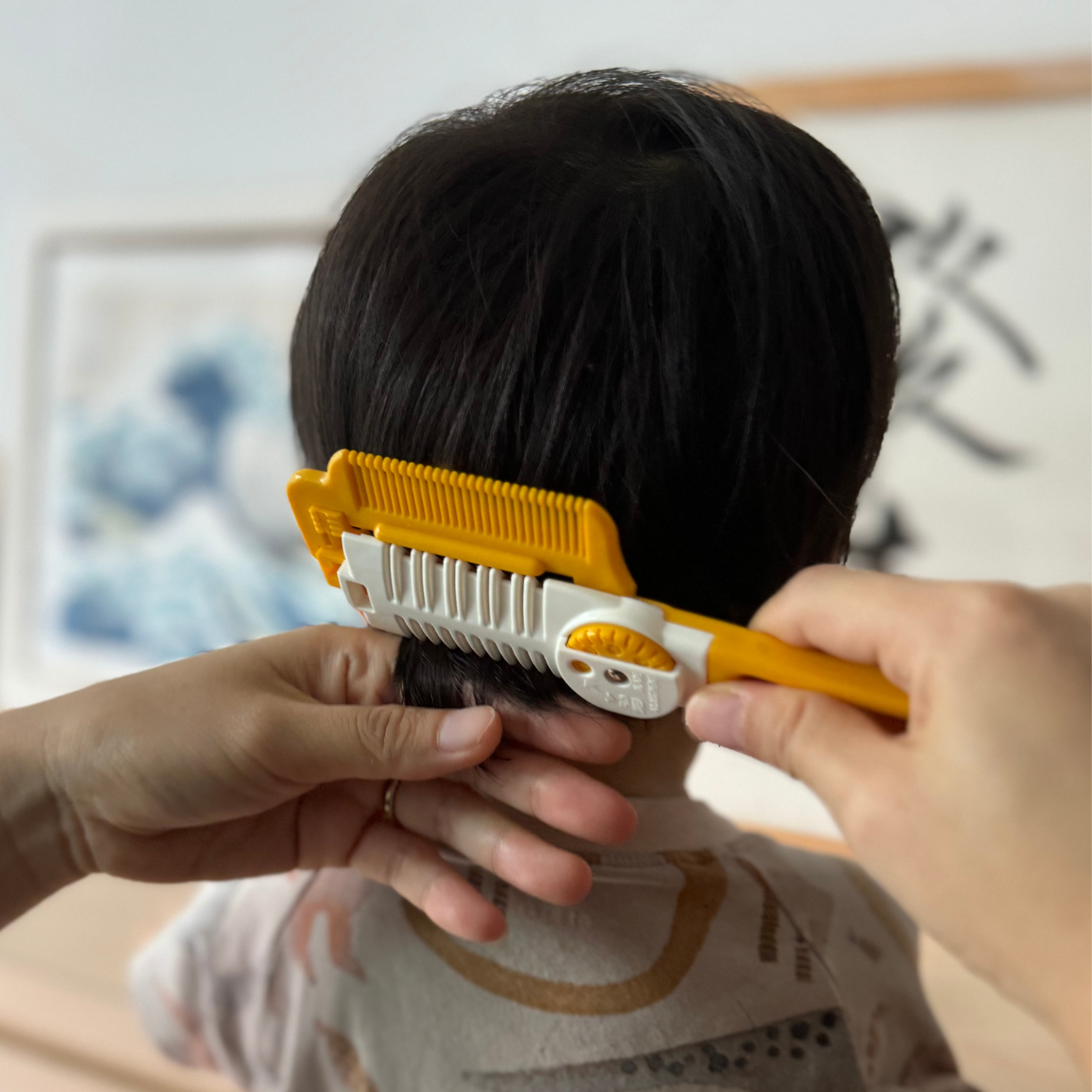 This innovative tool helps parents safely and easily trim and comb their baby's hair at home. Works for bangs and adult hair as well!