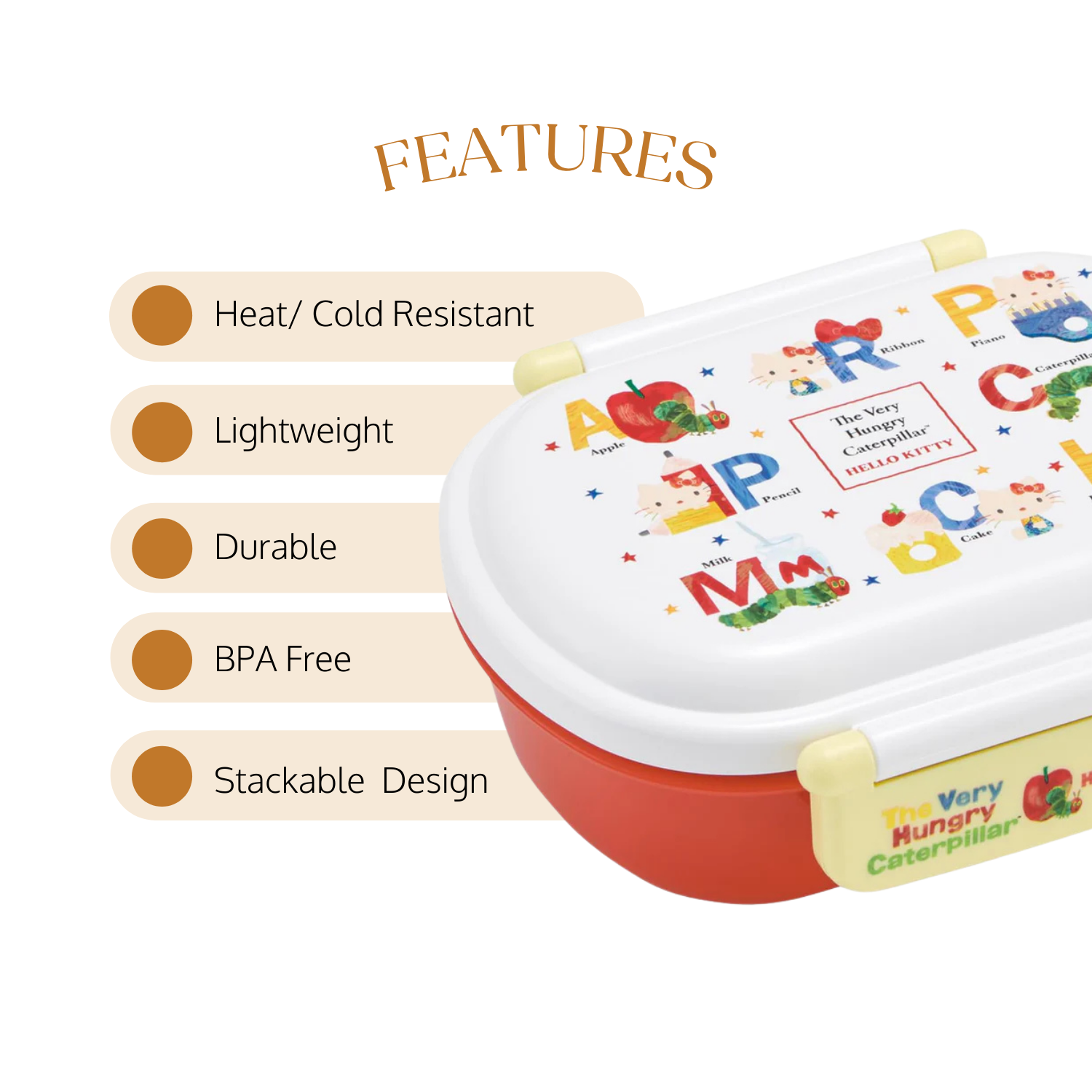 A refined lunch box designed for freshness, hygiene, and everyday convenience, featuring the Very Hungry Caterpillar.
